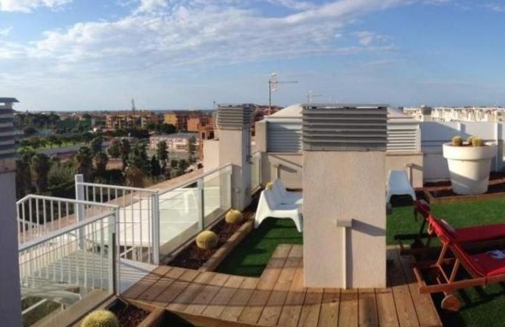 Уникальный пентхаус, расположенный в популярном районе, с исключительным видом на море, замок и горы Montgo, недалеко от города и пляжа.Первый этаж (площадью 180м2): просторный зал, гостиная, кухня, хозяйская спальня с ванной и гардеробной, а также еще одна спальня с ванной, терраса 40м2 с раздвижной крышей, тентами, интегрированными светодиодами, диванами и проч. Второй этаж (площадью 80м2): захватывающая верхняя терраса с удивительным видом на 360 градусов на Дению, замок и море, скамейки, кактусы вулканическом гравии, встроенные светодиоды, регулировка интенсивности освещения и т.д. Большие водонепроницаемые шкафы обеспечивают хранение садовой мебели и других предметов.Все жилые комнаты имеют исключительные виды на обоих уровнях.Кроме того, имеются: кондиционер, москитные сетки во всех комнатах, бронированная дверь, кухня со всей бытовой техникой и отличным декором.Комплекс был недавно построен, имеет постоянного консьержа, обширные зоны общего пользования с бассейнами для взрослых и детей, детскую площадку, корт паддл-тенниса и красивый зрелый сад.