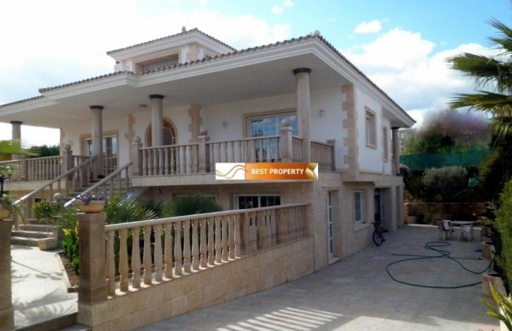 We offer fully renovated apartment in stylish interior design.Year built real estate in 2006. Orientation - South-East. For the safety of you, your family, and your property has a security door and double glazing. The main dwelling is on the second floor and features a covered porch, spacious hall, toilet, large living-dining room with covered terrace, independent kitchen with covered terrace, 3 bedrooms and 3 bathrooms (one in master bedroom). The ground floor also has a large living-dining room, open kitchen, 3 bedrooms, toilet and 2 bathrooms. The price includes a garage for 2 cars. Gender in ownership of the marble and natural granite. The plot is fully landscaped and has a large swimming pool with integrated Jacuzzi, Parking for several cars and d