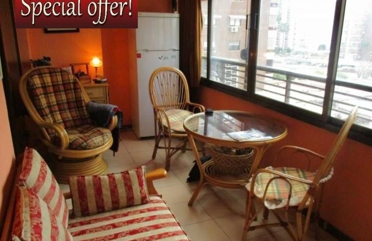 We offer a great apartment with mountain views in one of the best areas of Benidorm, just 300 m from the beautiful Levante beach.The apartments include: equipped kitchen, bedroom with double bed and built-in wardrobe and a spacious living room with exit to the terrace. The property is comfortably furnished, oriented to the South-West and is in good condition, armored door and video intercom. Parking space included in the price.The residential complex has a large swimming pool, convenient Parking and well maintained green areas. The infrastructure of this area is well developed, surrounded by all commercial services, restaurants, public transport and much more.