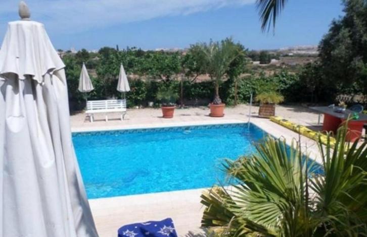 Villa in Elche, in the Altet area. Has a fenced plot of 2600 m2, with a garden, pool, barbecue, and open veranda. The house has three bedrooms with fitted wardrobes, two bathrooms and a restroom, a very spacious living room with fireplace, separate kitchen with own exit Outside. The villa is equipped with solar panels and a windmill, which saves 30 to 40% of electricity.