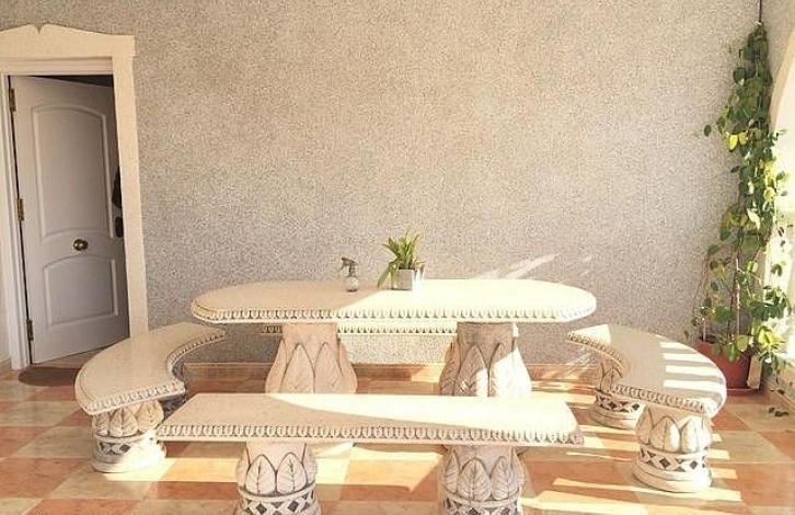 The villa was built in 1997 and is now in good condition, equipped with a central heating system. There is a spacious living room of 45 m2, bedrooms with fitted wardrobes, kitchen, bathrooms, terrace, garage and pantry. On the site there is a lovely swimming pool, a beautiful garden. Located 2 km from the sea. The excellent climate and tranquil atmosphere make this place suitable for both year-round and seasonal living.