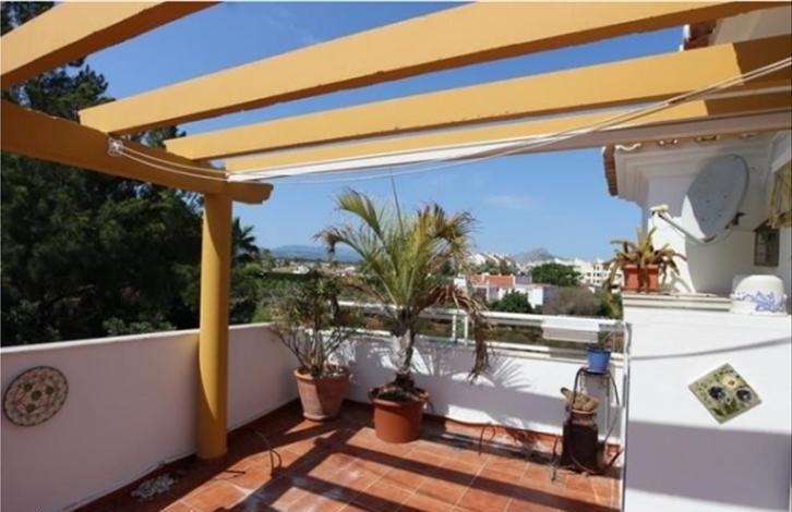 Stunning spacious penthouse in a beautiful urbanization. The apartment is in excellent condition, after repair. It is located in an urbanization with a swimming pool and green areas. The property has a good living-dining room, an equipped open-plan kitchen, two bedrooms converted into one large, a bathroom in the master bedroom, a beautiful 25 m2 terrace with awning. Additional equipment: air conditioning, gas heating, blinds, mosquito nets and safe in the wall.