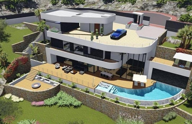 We offer a project of a luxury villa with an extraordinary design, which is designed to the highest standards to meet the expectations of the most demanding customers. The villa will be built using high-quality building and finishing materials. The interior is designed in light colors, large windows create a feeling of lightness and space. The central air-conditioning system, armored door, automatic irrigation, video intercom will be installed ... The layout includes: a spacious living-dining room with access to the terrace, a fitted kitchen, spacious bedrooms with fitted wardrobes and panoramic terraces. There is a basement, a sitting area with a barbecue, a beautiful pool on a terrace of 168 m2. The garage is included in the price. The beauty of the exterior and interior, a large plot, fascinating views - everything makes this an ideal option for people accustomed to surround themselves with luxury and want to create the most comfortable living conditions. This project you can build with the participation of our company. On the Spanish construction market, the company performs the functions of the General Contractor for the construction, renovation and engineering support of residential buildings in Spain on the Costa Blanca. Since 2005, it has taken the best position in the Spanish construction contract market segment "DeLuxe". The clients are provided with a wide range of works, from the development of the architectural concept to the commissioning of the completed construction site. The main strategic goal of the company is the creation of a high-quality product and rendering assistance to the Company's Clients on the issues of construction and architectural services. For Clients a full range of design and survey works the formation of reliable and beautiful houses, equipped with modern engineering equipment and communications from the world's best production At all stages of the design work, the Clients are provided with complete information that allows to minimize the cost of a particular project, as well as significantly reduce the time for the design of construction works. The team of employees and specialists pays great attention to the quality of engineering systems and carries out design, delivery, various types of utilities, such as: - water supply and sewerage - heat supply - electricity - air conditioning and ventilation systems - video surveillance - ohr Data systems - telecommunications systems - fire alarm systems - integrated automation SMART HOUSE The company's experience allows achieving effective interaction between all participants of the construction process. The following types of construction of residential buildings are carried out: - brick building of "DeLuxe" class villas - block building of villas- monolithic construction of villas We offer you both individual projects developed and coordinated taking into account your wishes, and ready-made standard projects from the best architects of Spain on the Costa Blanca . The maximum period of construction of your dream villa on the Costa Blanca, with the participation of our company will be one year from the moment of agreement and signing of the Agreement. The price for 1 square meter of construction of the villa will be from 1200 euros to 1500 euros, including all the finishes, depending on the cost of the materials you selected. Taking into account the wishes of our customers, from 01. 01. 2013 a number of additional services are being introduced in the field of Interior Design with an individual approach to each project, as well as landscape design and design. For more information on how to work with the clients of the company, you can check with our specialists. We look forward to receiving your calls and applications for the realization of your dream called "Villa by the Sea in Spain"