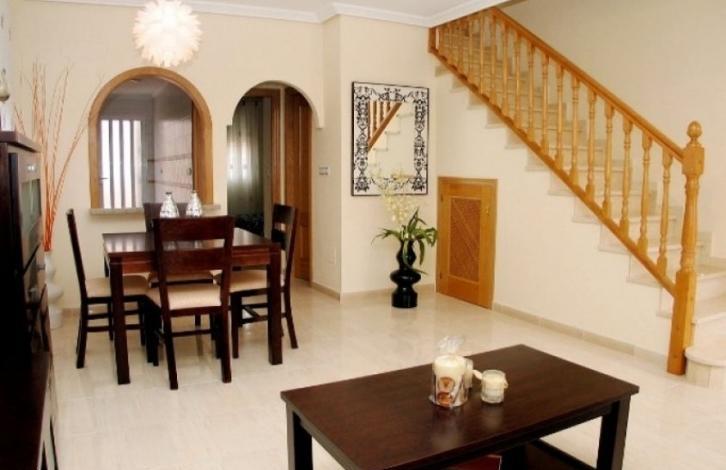 Недвижимость в новом жилом комплексе в экологически чистом районе Испании.На первом этаже есть терраса, гостиная-столовая, кухня американского типа, а также cпальня и санузел. Второй этаж Включает в себя две спальни, оборудованные встроенными шкафами и ванную комнату. Район обладает всем необходимым для комфортной жизни и отдыха: супермаркеты, магазины, бары, рестораны. Вблизи есть престижнейший гольф-клуб. До аэропорта города Аликанте 40 минут езды, а до аэропорта Мурсия приблизительно полчаса.