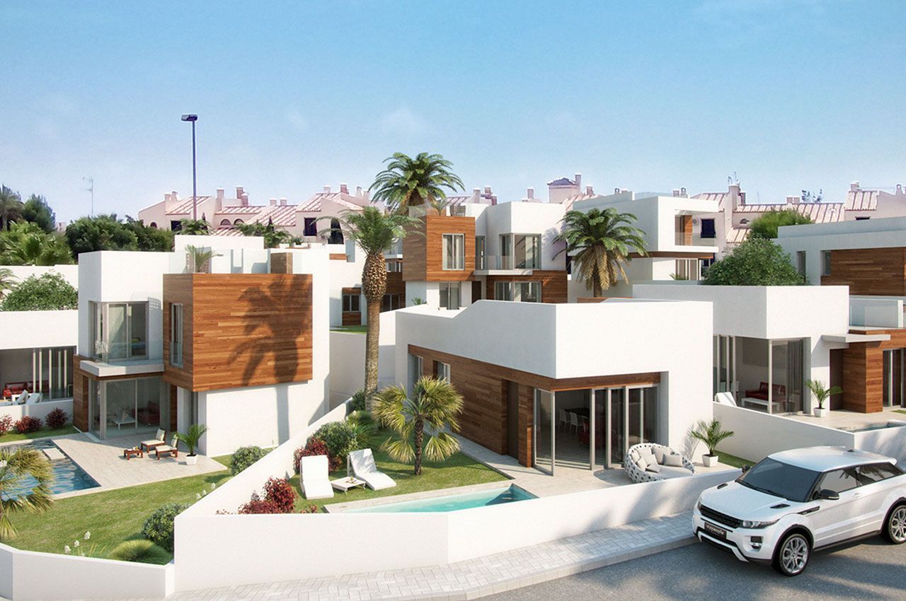 Large detached villas, decorated in the style of hi-tech, with 2, 3 and 4 bedrooms and 2 or 3 bathrooms. The villas are located close to the Golf course of Villamartin , in Orihuela Costa . of the house offers fantastic views of the Golf course and the sea. the houses have a large Solarium and a private plot with shared swimming pool. Also may include a basement. Call us and ask for more information!