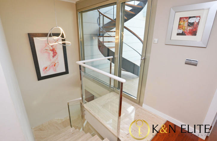 On the second floor - three spacious bedrooms, one of which was converted into a chic walk-in closet, 2 bathrooms, one of which is adjacent to the master bedroom and a terrace with access to the upper terrace. On the upper terrace there is a barbecue where you can spend time with family and friends and enjoy excellent views of the Mediterranean coast.