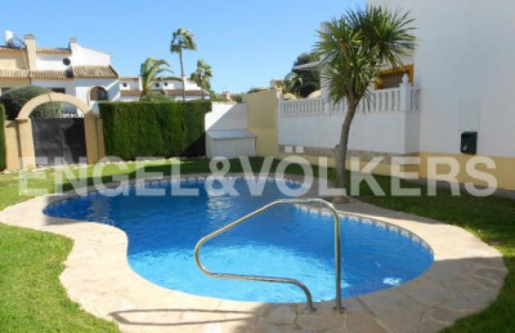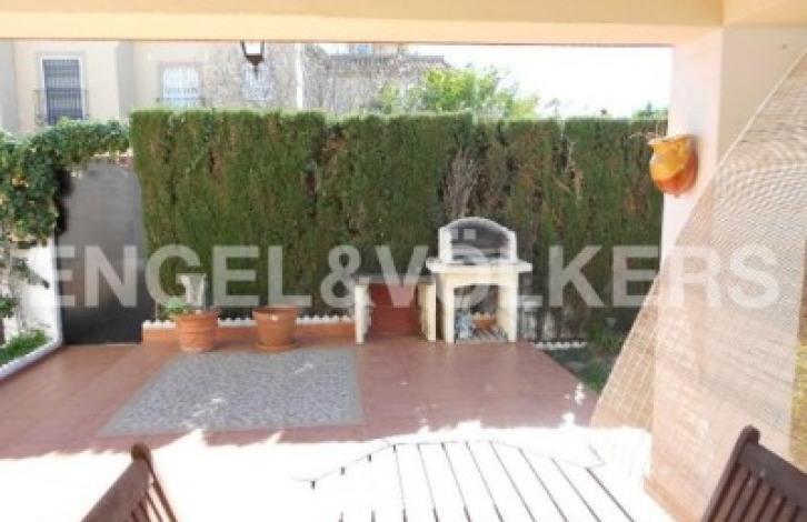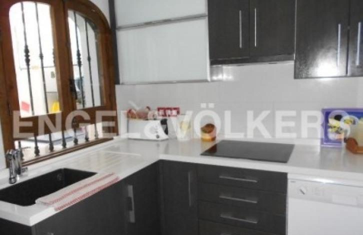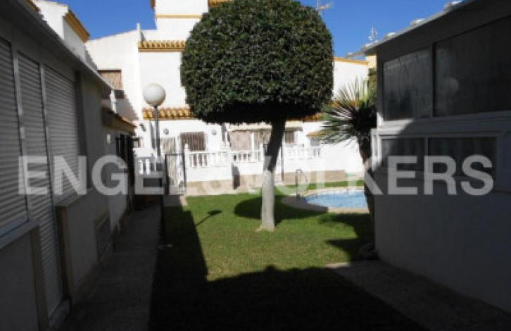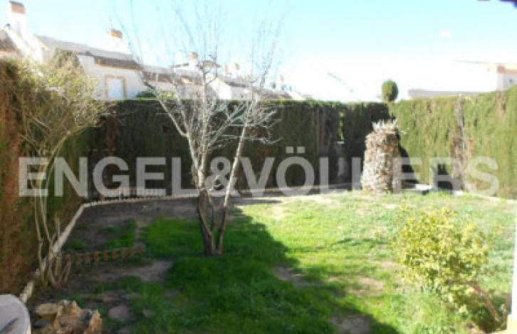 Magnificent dsemietached villa in Aguas Nuevas. It has 3 bedrooms with fitted wardrobes and 2 bathrooms, bright living-dining room with access to the main terrace, separate kitchen with quality appliances. Central heating, security door, roof terrace with great views, parking on the plot. Community pool. Fully equipped with fireplace and garden outside. The house is located in one of the areas most sought after for the tranquility, communication with the center and services.
