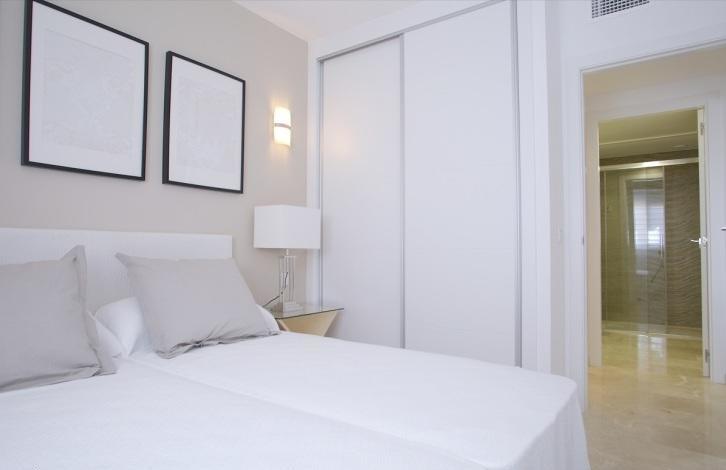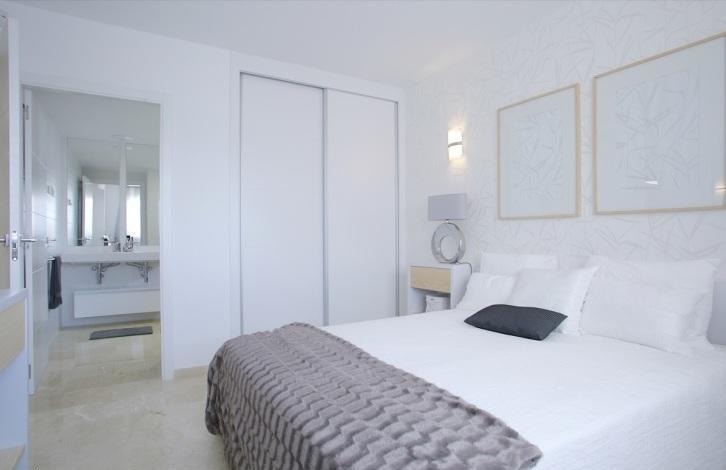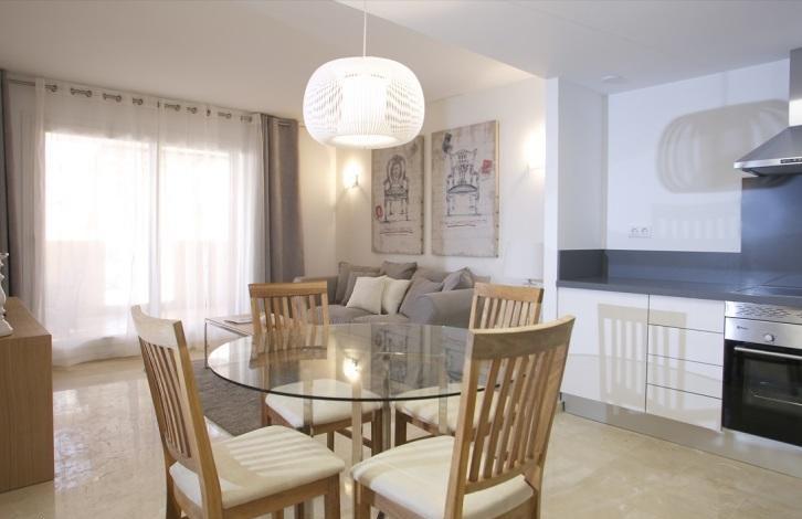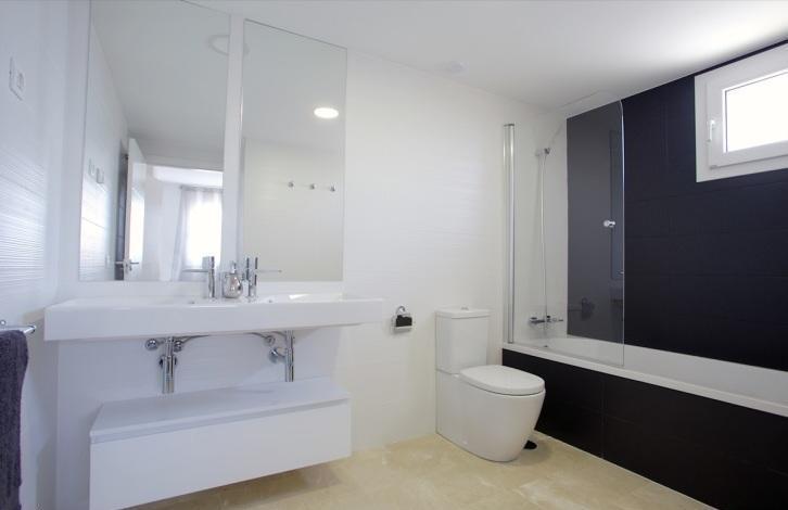 Apartments in La Recoleta, Punta Prima, Torrevieja. Large salon, open kitchen, 2 bedrooms with fitted wardrobes, 2 bathrooms, terrace 13 m2, storage room, underground parking. The total area is 95 m2.