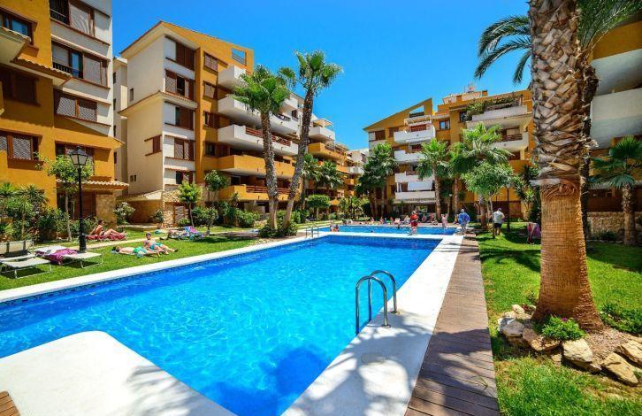 The La Recoleta complex has beautiful landscaped areas for common use and swimming pools. The apartments are located 5 minutes walk from the bay of Cala Piteras and 2 other beaches: Playa de Punta Prima and Cala Ferris.
