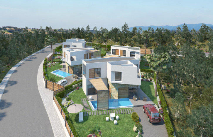 Villa in the town of Finestrat. Salon, separate kitchen, 3 bedrooms, 2 bathrooms, terrace 84 m2, solarium. The total area of the house is 154 m2. On a plot of 421 m2 there is a private garden, a swimming pool and a parking space.