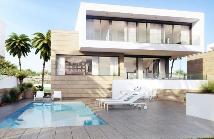 Amazing large villas (more than 300 sq. M.) With large plots. They can have 4 or 5 bedrooms. In the houses there is a garage for parking two cars and a storeroom with a place for a washing machine. The living room is very spacious, with a large terrace and access to a private pool. It is possible to install a lift from the basement to the second floor in the houses. The villas are built of high quality materials and have a security alarm system, air conditioning and a private pool. These villas are located in Torre de la Horadada (Costa Blanca), in front of the Higuericas beach with white sand and Clean water. Nearby are several golf courses and shopping centers. Easy access from the airports of Alicante and Murcia.