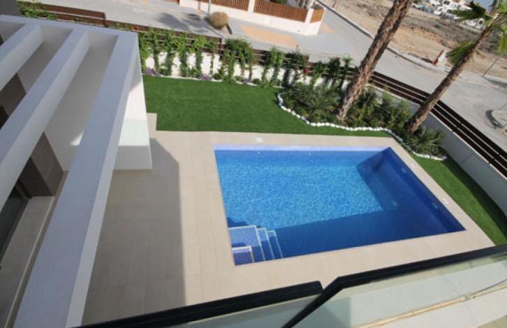 Beautiful gated complex. It consists of luxury villas with 3 bedrooms and 3 bathrooms, big open kitchen and living room with terrace. Two bedrooms on the first floor in-suite and the master bedroom with a nice big terrace overlooking the garden. Privet pool is optional. For the construction of these villas they have been used quality materials. Close to the residential area you can make use of a range of excellent sports facilities: paddle tennis courts, bowling and, obviously, a golf course. All facilities are located within a short distance, making it convenient and easy to access all areas of the facility. The club has a top quality driving range which is considered one of the best in the Region of Valencia.