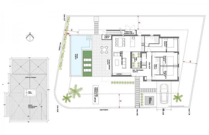 The villa is located in the urbanization La Marina, a prestigious area on the Costa Blanca with all facilities, located 20 minutes' drive from Alicante airport, close to the beautiful beaches of Guardamar and only 2 km from the fields Extraordinary golf. Modern villas consist of a spacious living room, 3 bedrooms, fitted wardrobes, fitted kitchen, 2 bathrooms (1 with bath) and 1 guest toilet. These independent chalets have private grounds, private pool, parking, a terrace and a Mediterranean style garden with excellent views. The houses are equipped with pre-installation of air conditioning, video intercom and security system.