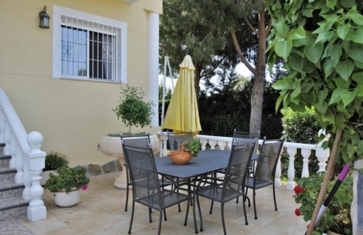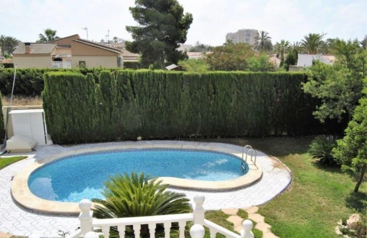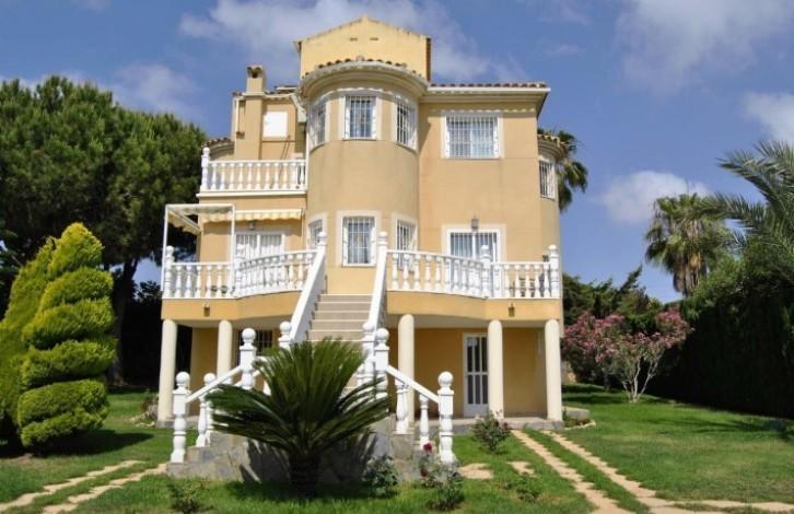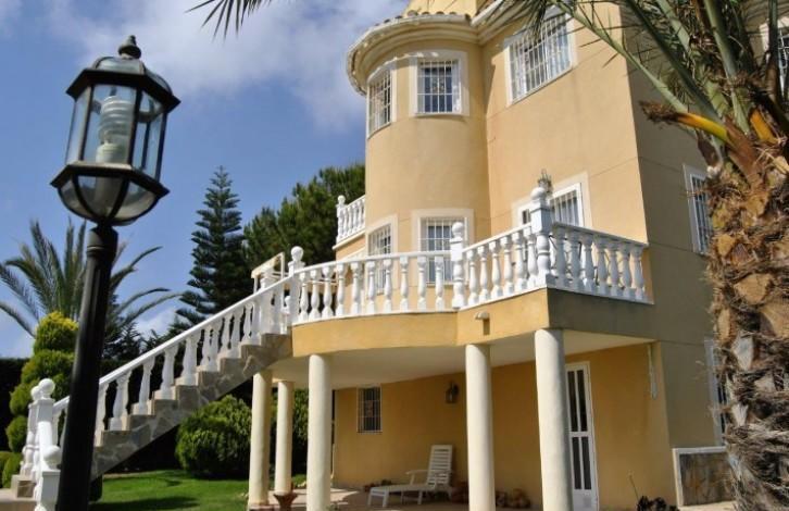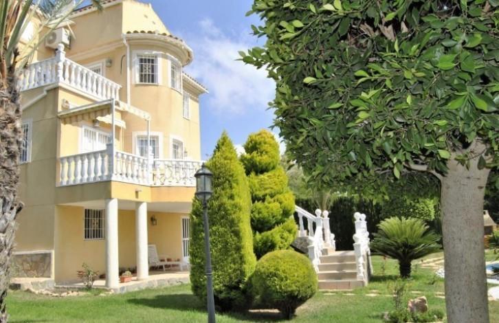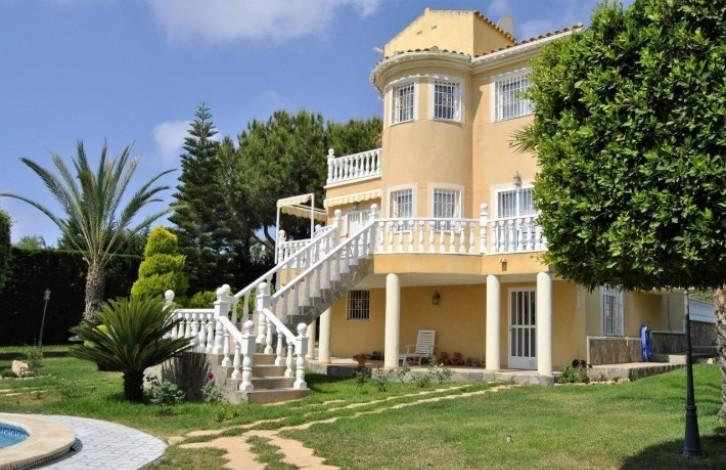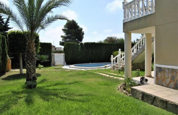 Beautiful and exclusive villa located in Los Angeles (Torrevieja). Beautiful location, a zone that is in demand and only 1 km from the sea. On a plot of 950m ^ 2 there are a total of built-up 260m ^ 2. 2 floors plus an underground garage. There is an unusual garden of 700 m ^ 2 with a beautiful private pool. The garage is designed for 2 vehicles, a natural gas connection system and a bathroom. On the first floor there is a large living room with a fireplace, a large kitchen, a utility room and a bedroom converted into a separate office. The living room opens onto a terrace leading to the pool and garden. On the second floor there are 3 bedrooms (2 with a terrace) and a bathroom. The master bedroom has a bathroom with a jacuzzi. The whole house is furnished with high quality furniture and appliances, private access to the garage and 2 solar panels.