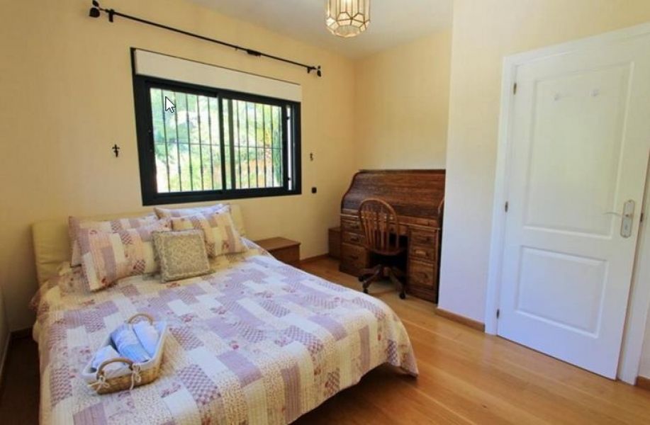 Вилла находится в безупречном состоянии, на первом этаже находятся: просторная гостиная-столовая с камином, полностью оборудованная кухня с бытовой техникой, туалет для гостей, ванная комната, две спальни и панорамная терраса с барбекю. Второй этаж состоит из спальни с террасой и библиотекой и главной спальни с собственной ванной комнатой.