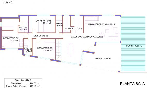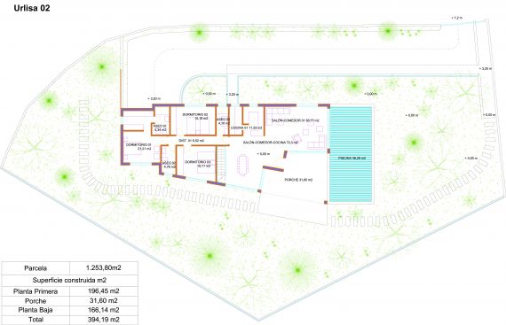 Дом с 3 спальнями, 3 ванными комнатами, 2 большими гостиными и просторной кухней. Находится на участке площадью 1253м2 c собственным бассейном и большим гаражом 178м2.