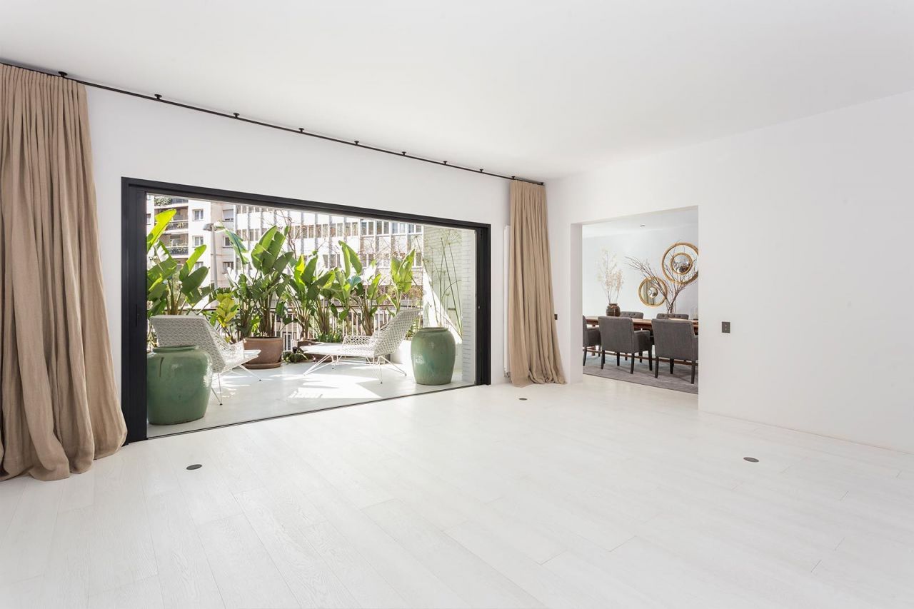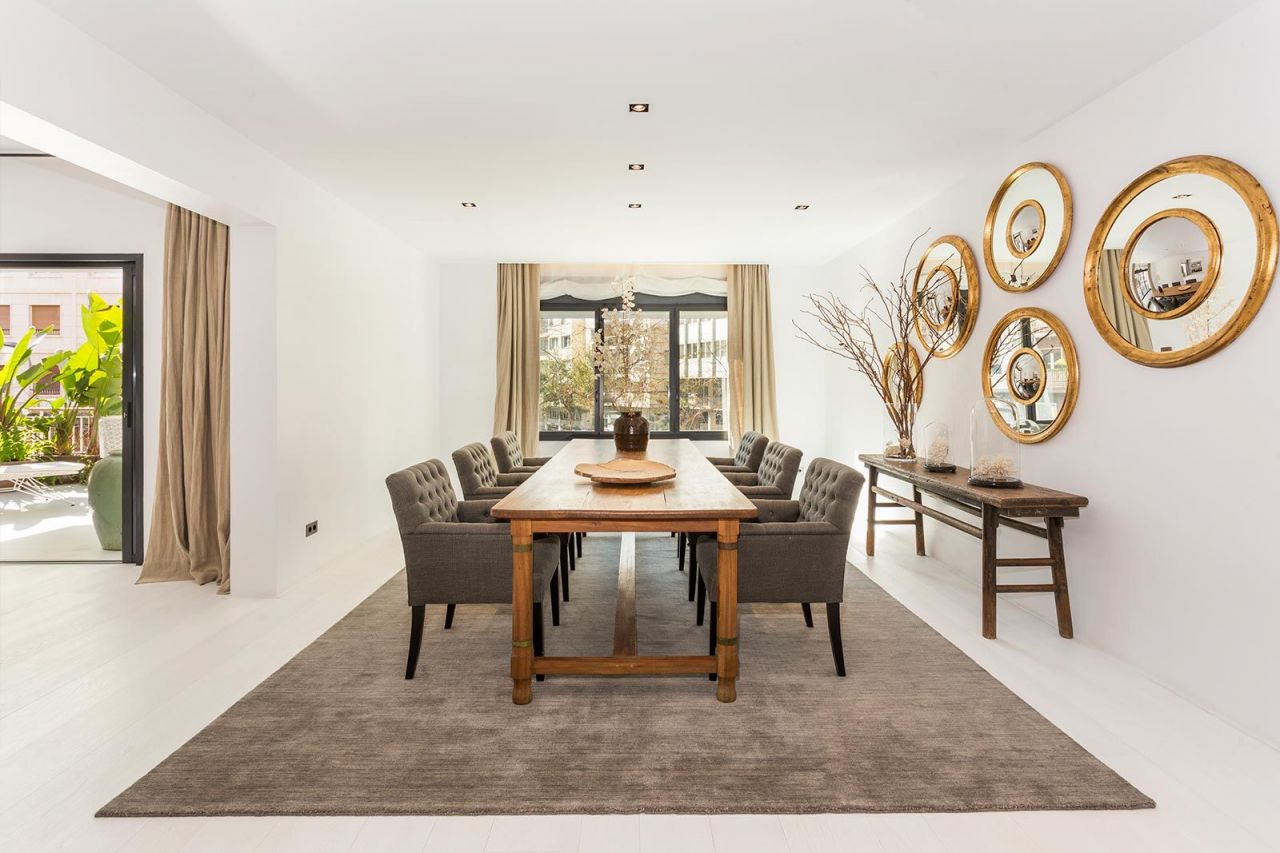 Outstanding apartment for sale with views to Turó Park. The property has a total surface of 453 sqm and a 22 sqm terrace. It includes a spacious living room, a semi-open plan professional kitchen connected to a large dining area. Moreover we find 5 bedrooms with ensuite bathrooms and a fully independent apartment ideal for staff or guests. The property has been designed by the prestigious interior designer Cristina Rodriguez. As perceived in the pictures, it combines large windows with black frames and white oak flooring creating bright light throughout the apartment is divided into day & night areas. On the left side we find a large living room with direct access to a 22 sqm terrace with a fish pond and lots of plants that give it privacy. Connected to the living room we find a spacious dining area ideal to organize dinner with guests. Next to it we find a semi-open professional kitchen with high end appliances and some rustic details. A guest double bedroom with ensuite bathroom completes this area of the apartment. On the other side we find one master bedroom with ensuite bathrooms with golden details and views to Turo Park. Moreover we can find 2 double exterior bedrooms with ensuite bathroom and one interior ensuite bedroom. As an added value we have an independent apartment which is ideal for guests or staff. Comments for address: barcelona, Bori i Fontestà 4