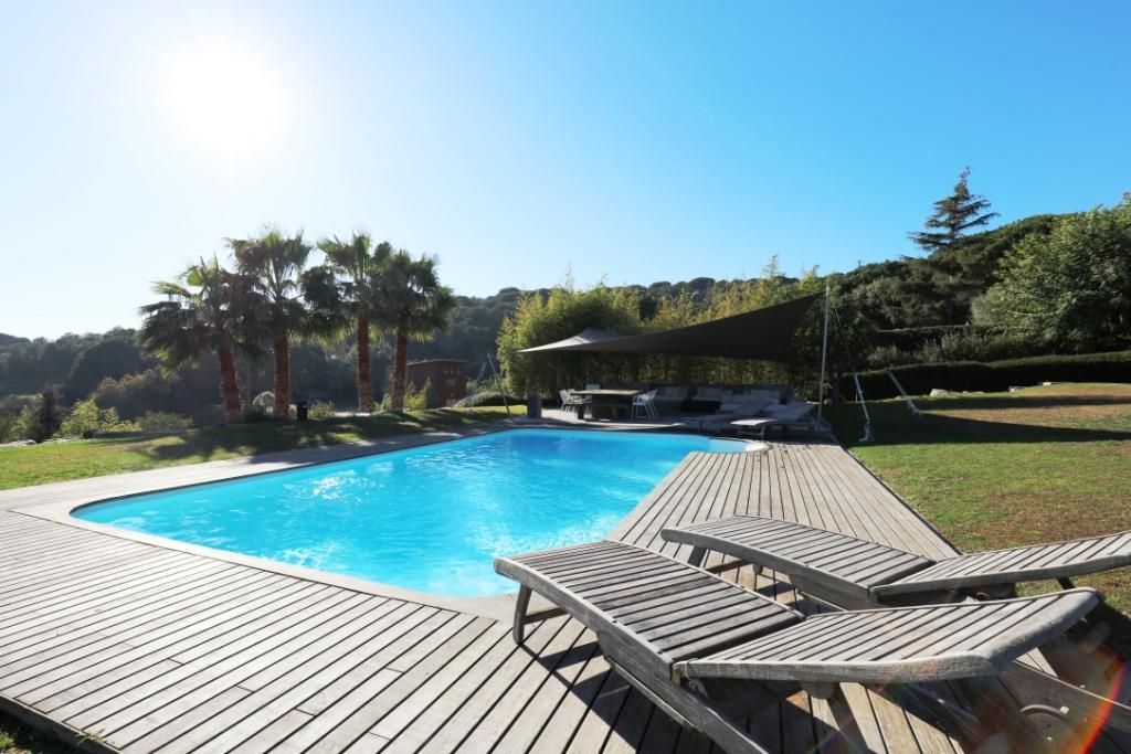 The house has a covered terrace, a summer dining area, a large garden with a private swimming pool. There is a water tank and a playground for children.