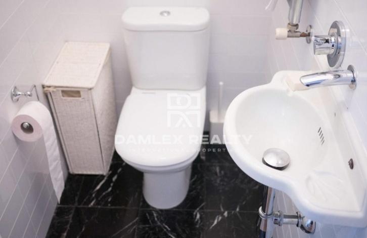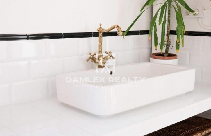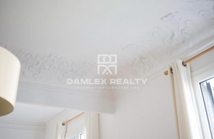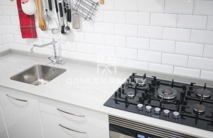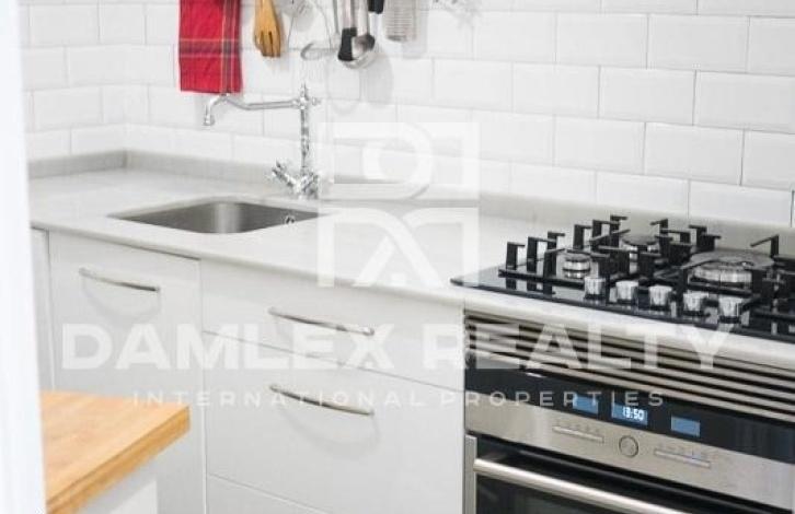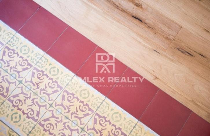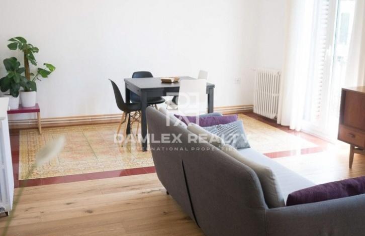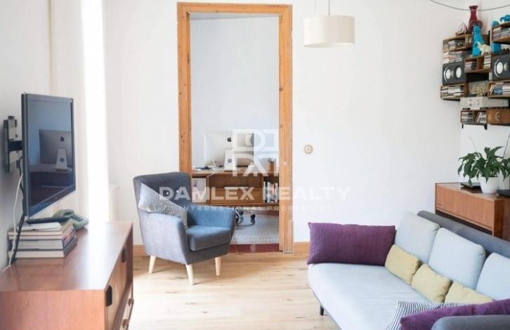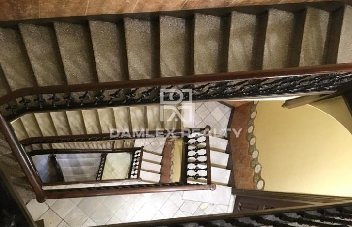 The apartment has an area of 104 m2 with repair. The apartment has 4 bedrooms and 2 bathrooms. At the entrance you enter the hallway from which there is an entrance to a spacious and bright living room of 25 m2, which also serves as a dining room, and into the study. From the living room there is an exit to the balcony. The main bedroom has a dressing area and a small glazed gallery. A small kitchen is equipped with all necessary household appliances and is connected to the laundry area by the washing machine. There is air conditioning. The apartment is located in an old building, which was restored recently. The building has an elevator, all communications have been completely replaced and the facade of the building has been restored.