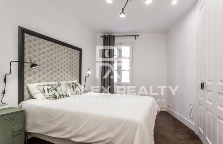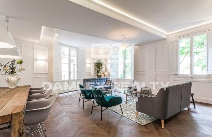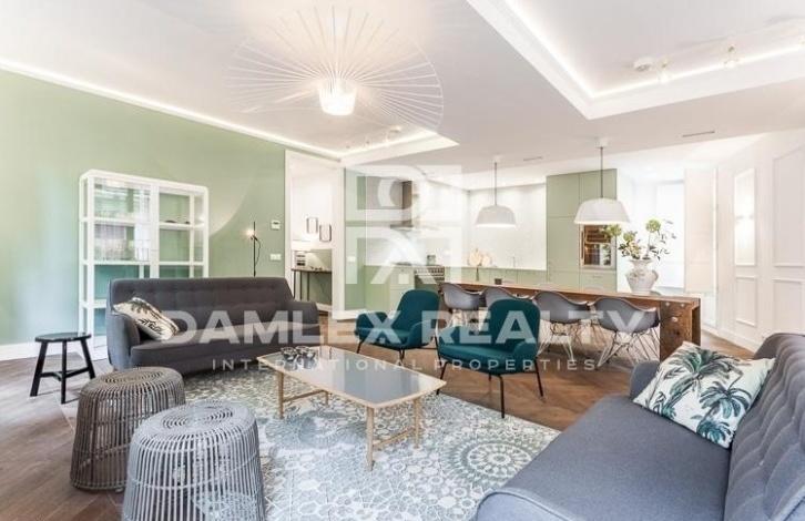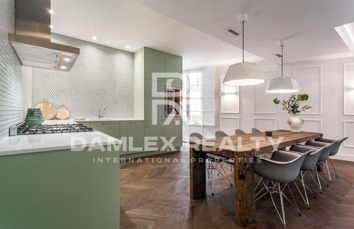 Luxury apartment of 140 m2 is located on one of the most beautiful squares of the Old City of Barcelona, very close to Plaa Catalunya. The building where the apartment is located was built in 1946, and in 2017 it was completely renovated. During the renovation, the building was also equipped with an elevator. Apartment with 3 meter high ceilings has 4 balconies. Spacious living room with a large open kitchen and a large dining area, from windows which offers a magnificent view of the square. Three bedrooms, one of which has its own bathroom. The apartment also has a laundry area and a separate guest toilet. The apartment is on sale turnkey, including furniture and home appliances SMEG: washing machine, dryer, refrigerator, dishwasher, wine cooler.