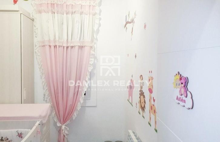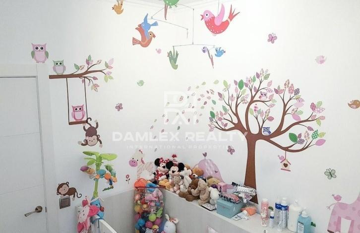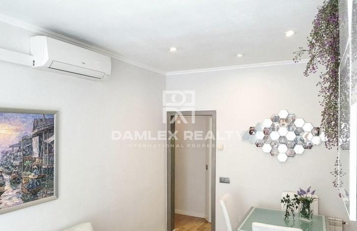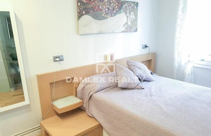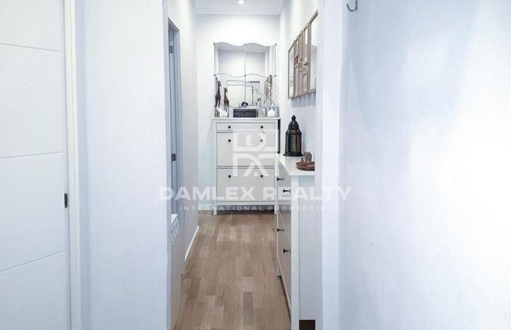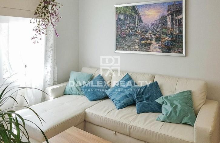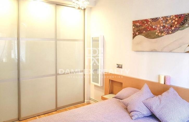 The apartment is 100 meters from the beach. The apartment has two bedrooms, one of which is spacious and bright with a large built-in wardrobe, and the other is individual. The modern kitchen is fully equipped with home appliances. From the kitchen there is an exit to the laundry. The apartment is equipped with air conditioning and gas heating. There is a large bathroom. The apartment was recently renovated and is sold furnished. Nearby there is a metro station Poble Nou, which is located just a few steps from the building where the apartment is located. The building itself was built in 2000.