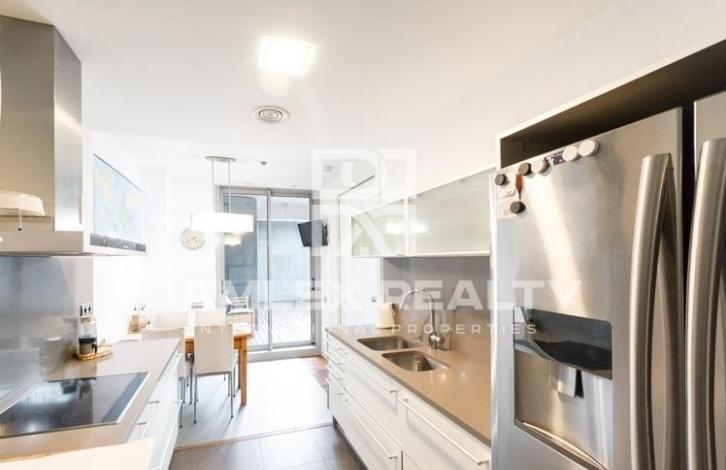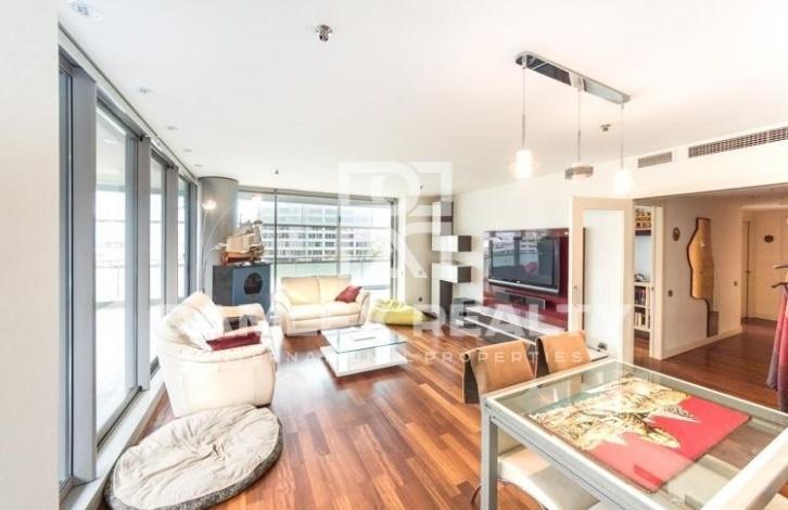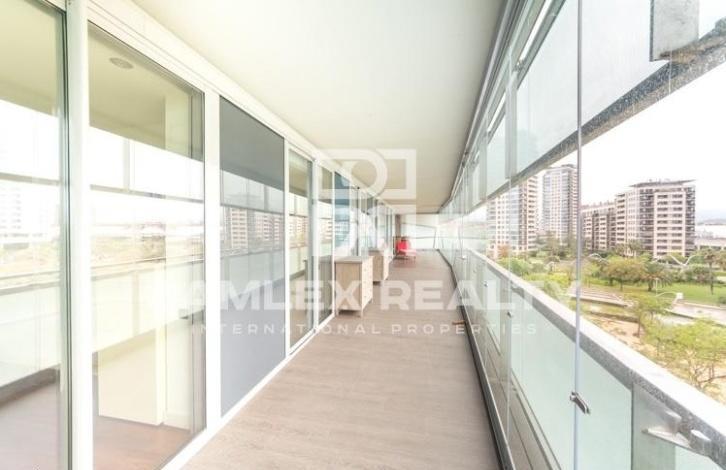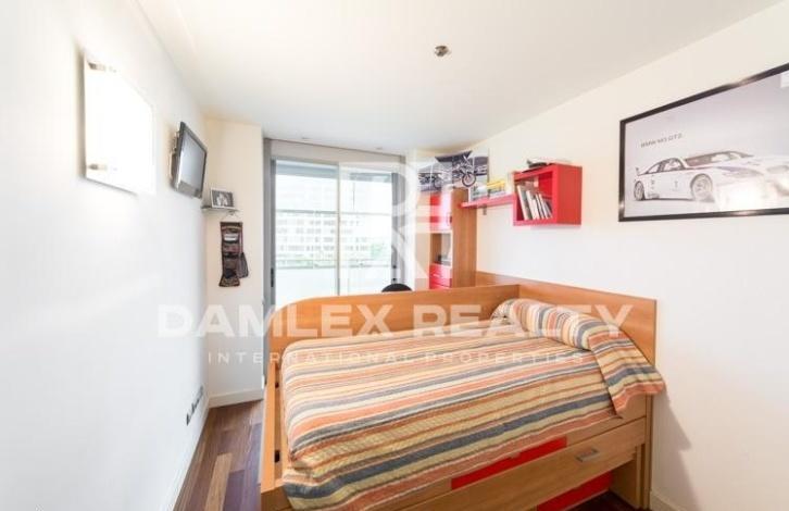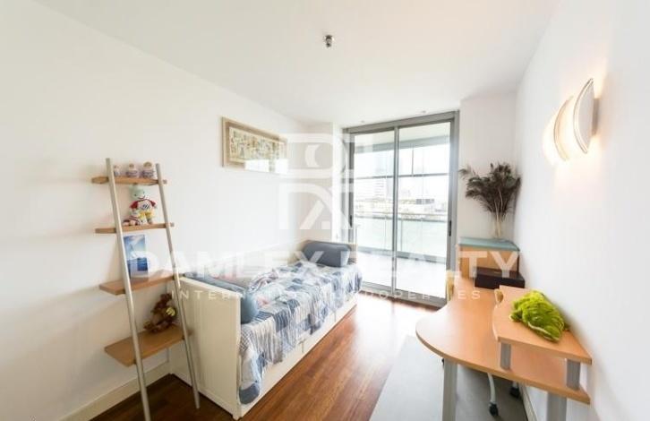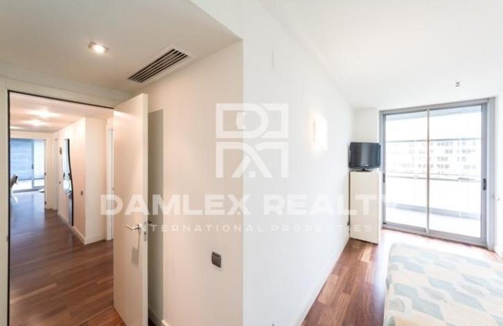 This closed residential complex is located in Diagonal Mar area near the beach and several parks. Just 5 minutes walk is a large shopping center. In the residential complex there is a swimming pool, a sports hall. The apartment has a view to the sea and a large terrace of 102 m2. The living area of the apartment is 130 m2. The apartment has 4 bedrooms and 2 bathrooms. Spacious living-dining room with a beautiful view of the sea has access to the terrace. The parking space is sold separately.