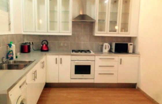 The apartment is located on the first floor in building without Elevator. Area of the apartment is 130 m2 and the apartment consists of 3 bedrooms, 3 bathrooms, living room, kitchen and terrace.