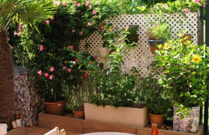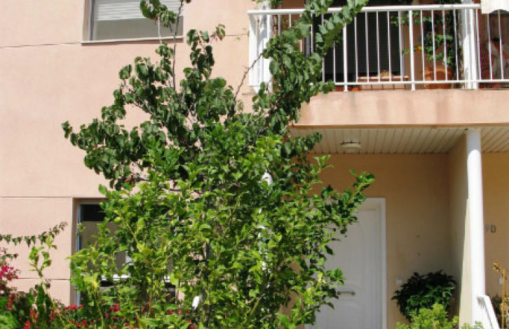 At the entrance courtyard of 21 m2 with garden, rear garden 24m2 with exit to a large garden in a communal area and pool. A covered veranda.