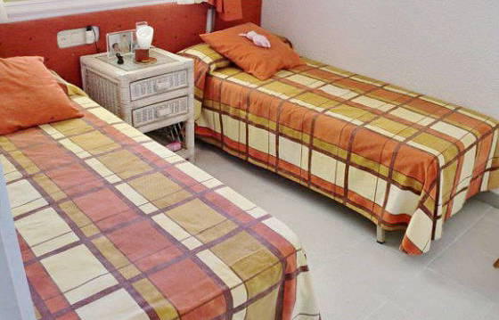гостиная, кухня, две ванные комнаты и две спальни + большая терраса. Кондиционер и мебель. В комплексе есть общий бассейн и сад.