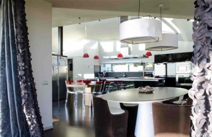 Entering the house, we get into a spacious living room with French windows and a beautiful view of the garden and the sea, then an ultramodern kitchen with direct access to the garden to the barbecue area and guest room. On the second floor: master bedroom with a spacious bathroom and a wardrobe, as well as access to the pool with Jacuzzi and sauna. The system automatically warms the water temperature in the pool, as well as automatically opening the windows - slides allow you to enjoy the pool not only in the summer, but in the winter. 2 bedrooms, 1 bathroom, large playroom for children. On the upper floor there is a bathroom with a Jacuzzi. The house also has a room for servants, a pantry room with freezers, parking for 30 cars.