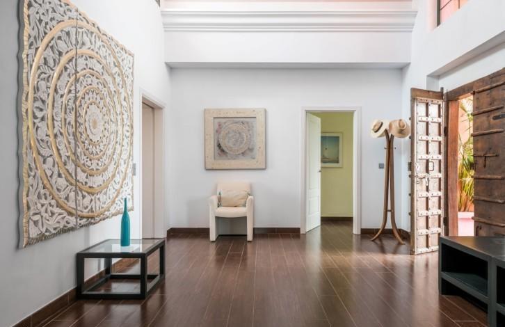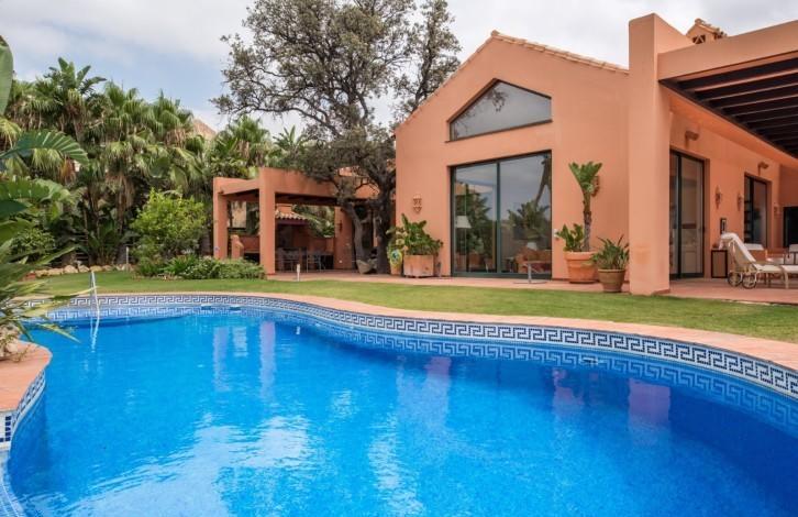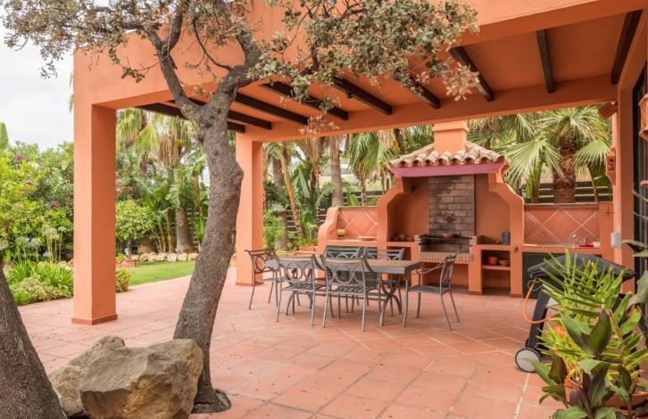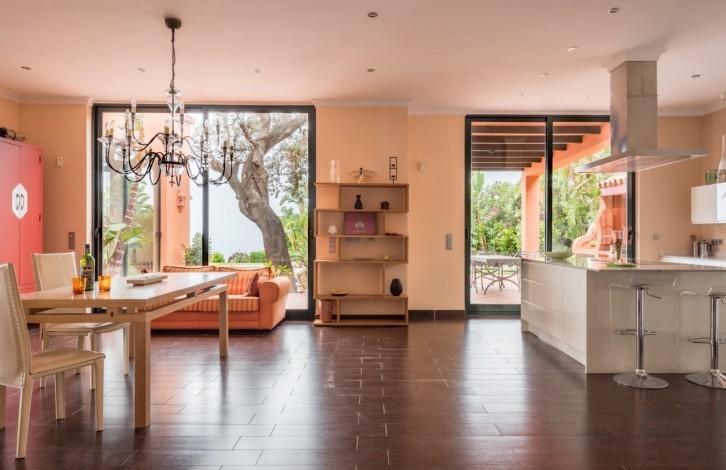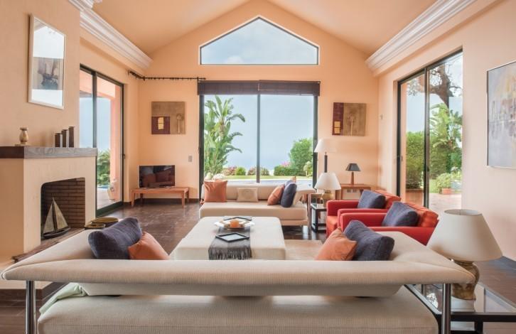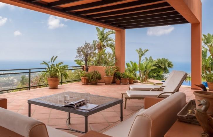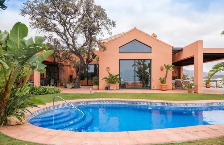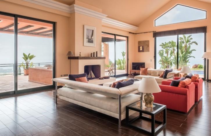 The villa is built in the Andalusian style and gives a feeling of warmth and spaciousness thanks to its competent distribution areas, sliding glass doors and panoramic views of the coast. View offers a truly spectacular - almost 90 km of the coast from Marbella to Gibraltar and Morocco on the horizon. From the hall you can get either in the living room with high ceilings and a fireplace, or in the huge kitchen with a dining area. There are several covered and open terraces, barbecue area. The first floor of the villa is now being used as a large office, but it can be reconstructed into 2 bedrooms with bathrooms. There is also an adjacent plot of 800 m2 (not included), which can be used for the construction of the guest house with a garage.