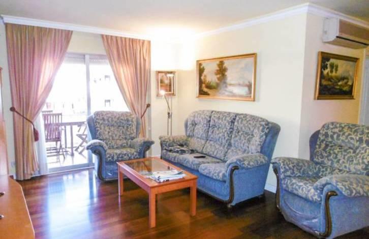 Sunny apartment with communal pool and small Park in a residential area of Salou!The apartment is on the 5th floor with 4 double bedrooms, each with air conditioning split cold/heat and built-in wardrobe. Bathroom and WC. 2 terraces. Spacious living room of 35 sqm with dining area and access to the terrace. A separate fully equipped kitchen with a dining area. The apartment is parquet and tiles. Gas heating. The apartment is in excellent condition! Sold fully furnished. The price includes a garage.