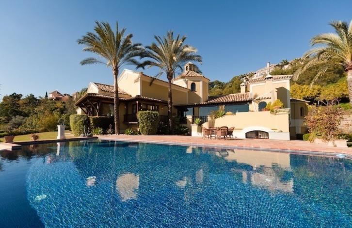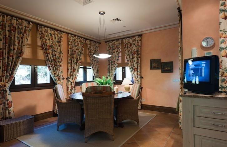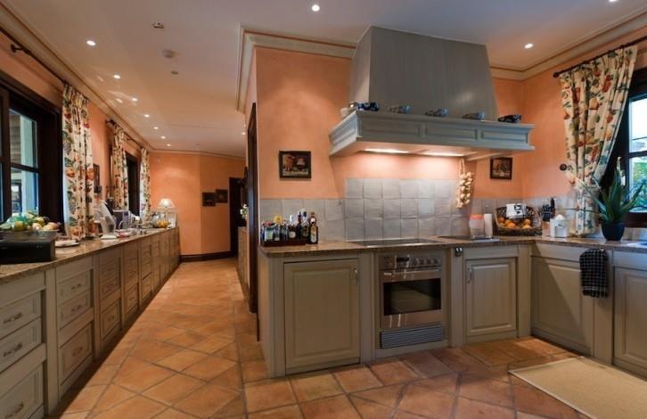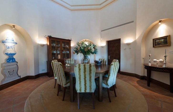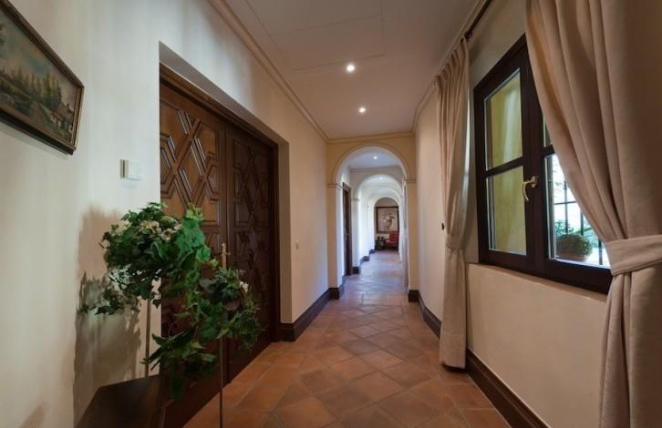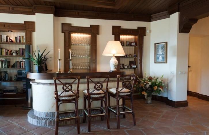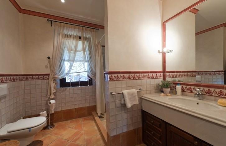 On the first floor there is an entrance hall and patio with a fountain and orange trees, a living room with a fireplace, a terrace, a separate equipped kitchen and a breakfast area, a laundry room, 2 guest bedrooms with 2 bathrooms and a master bedroom with a bathroom and a dressing room. Near the entrance there is a room that is currently used as an office, but can be converted into a 5 bedroom. On the ground floor there is another bedroom with a bathroom, a pantry, a technical room and a garage for 2 cars + a golf car. Heated swimming pool.