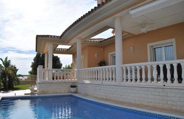 For sale a magnificent house in front of the sea and the beach in Spain, Costa Dorada. The house is located on the first coastline near the town of Miami Playa. Delightful views of the sea, nice plot of 1000m2. The house has 6 bedrooms, two of them with their own bathroom and dressing room, 5 bathrooms (two of them have a Jacuzzi), 2 spacious living rooms. On the territory of the house there is a well-kept garden with a swimming pool and a garage for 2 cars. The house is in perfect condition.