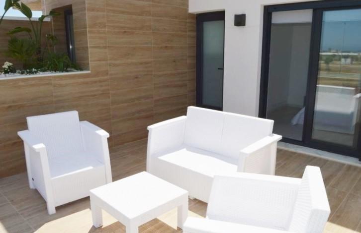 Salon, kitchen, 3 bedrooms, 2 bathrooms, glass sliding doors with access to a large terrace with a swimming pool, a fenced garden and parking. The total area is 100 m2. The property is located in a residential area near the sea lagoon of Mar Menor (Maloe More) in the town of San Pedro del Pinatar, on the Costa Calida. This place is very popular among tourists, it is famous for its microclimate, natural salt lakes and healing muds, which have amazing healing properties. White sandy beaches are called one of the cleanest in Europe and are marked by a blue flag. This place attracts sports lovers: within a radius of only a few kilometers are well-known golf clubs, a stadium, a sports hall, a cricket pitch and tennis courts. This is an ideal place for lovers of water sports. The town is well connected with major airports, commercial centers, big cities and the national road N-332 and high-speed highway AP-7.
