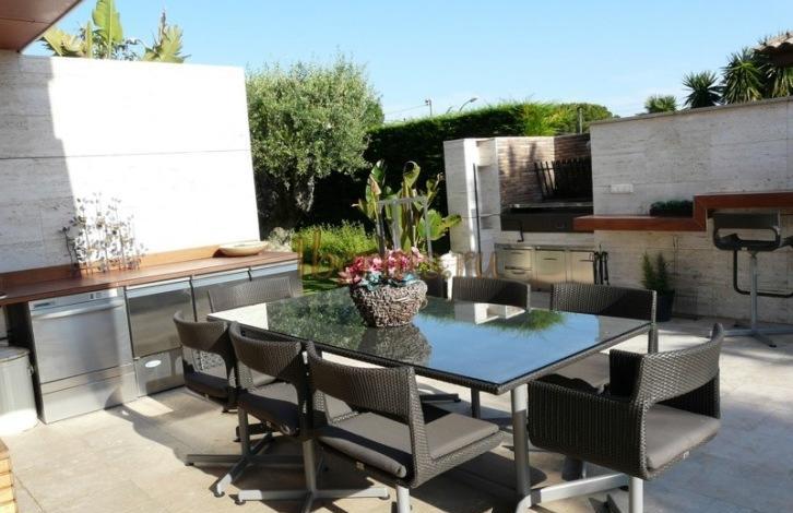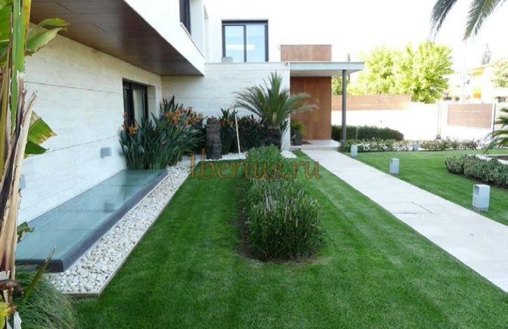 На подземном этаже, помимо гаража на 3 автомобиля, есть гимнастический зал, ванная с сауной и комната отдыха. На внешней территории расположены сад, бассейн и летняя кухня с барбекю и обеденной зоной. IBER-VD-107