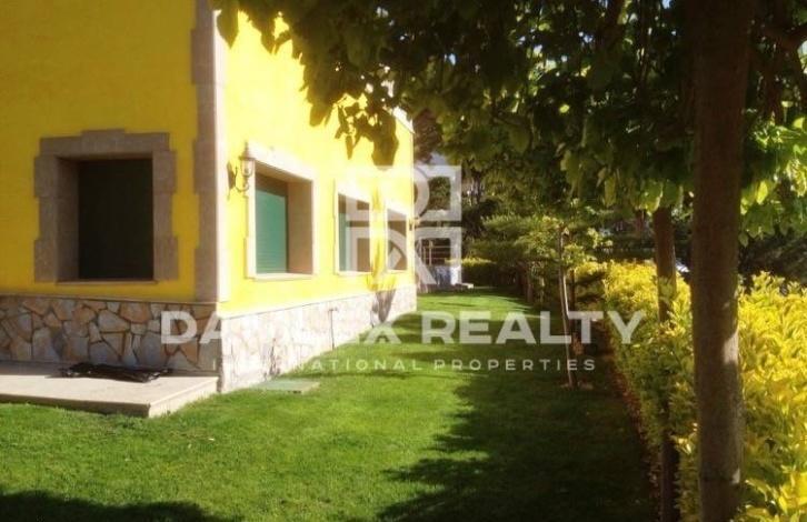 A large 750 m2 house is located in the town of Cabrils on the coast of the Maresme Coast on a land plot of 2150 m2. The house has 3 floors. On the ground floor there is a large wine cellar, a hall for celebrations, a fitness room with a bathroom and a sauna. From this level one can get to the pool and a summer terrace with barbecue. On the second floor there is a lounge-dining room with a fireplace, a large bedroom with its own dressing room and bathroom, kitchen, storage room and laundry room. From this floor you can get into the garage, which is designed for 2 cars, as there is parking outside for 5 cars. On the third floor there is a second salon with a fireplace, a cinema hall, a library, 3 bedrooms, a bathroom. The house is located 2 km from the beach and 18 km from Barcelona