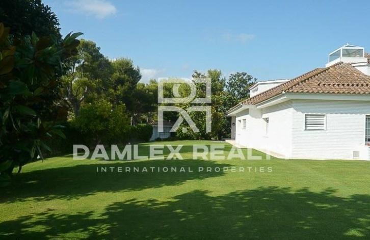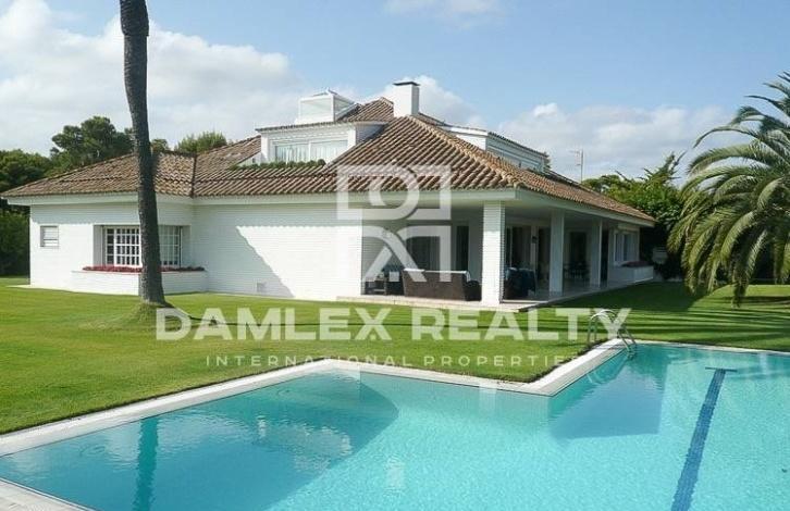 Luxurious villa of 450 m2. The house consists of 4 bedrooms, 3 bathrooms, a living room with a fireplace of 45 m2, a dining room of 20 m2 and a second living room with a fireplace of 50 m2. Large private garden with pool. A separate guest house of 80 m2 with 2 bedrooms, a living room, a bathroom, a kitchen and a patio. The villa is located 10 minutes from the golf course and 500 meters from the beach.