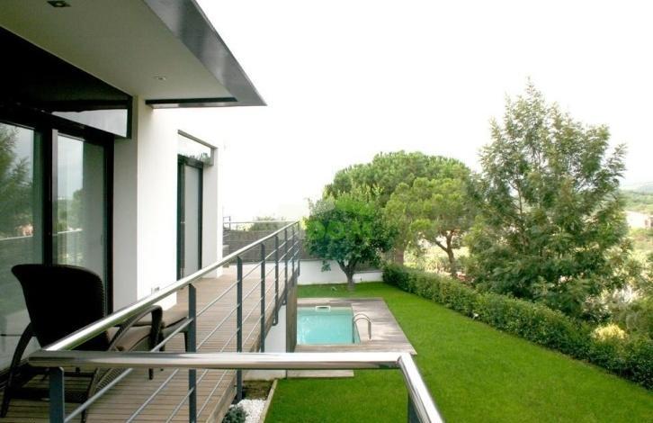 Spain Barcelona, the Caldes d'Estrac house with designer finishes House finished project a professional designer. Year of construction of the house: 2006 Located in the town of Caldes d'Estrac 30 km from Barcelona. The area of 244m2 house, 2 floors: living room of 60m2, fully equipped kitchen with modern appliances, 4 bedrooms, ironing room, 4 bathrooms. Swimming pool, green area and well-groomed garden in the Japanese style. 2 parking spaces. Price: 840 000 €