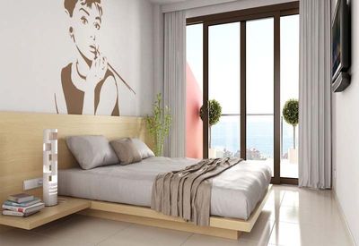 Apartment of 70 m2 is located 350 meters from the sea. It has 2 bedrooms, 1 bathroom, equipped kitchen, living room, terrace. On the territory of the complex there is a swimming pool.