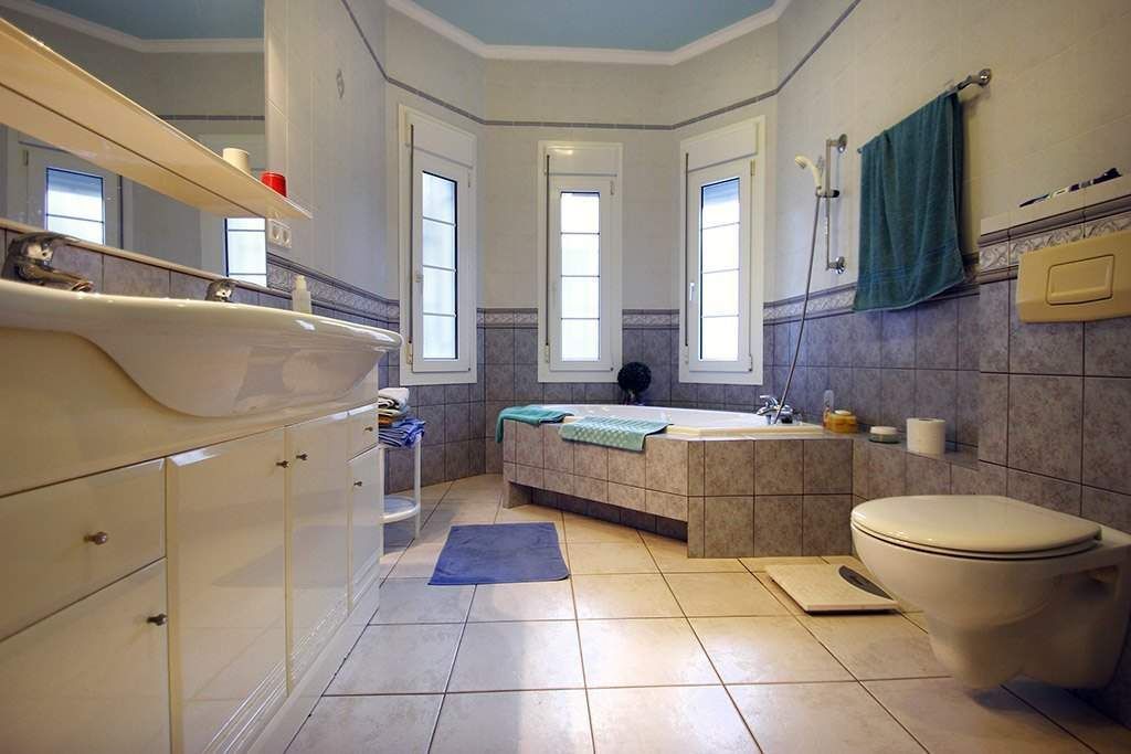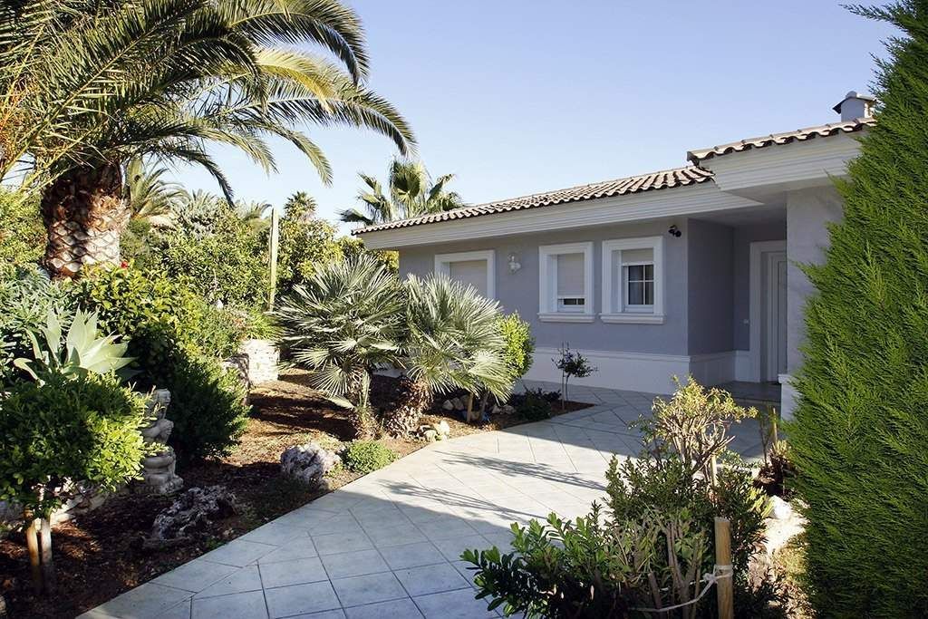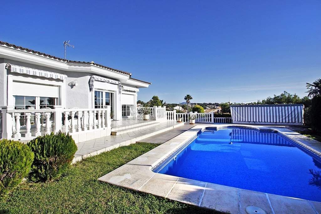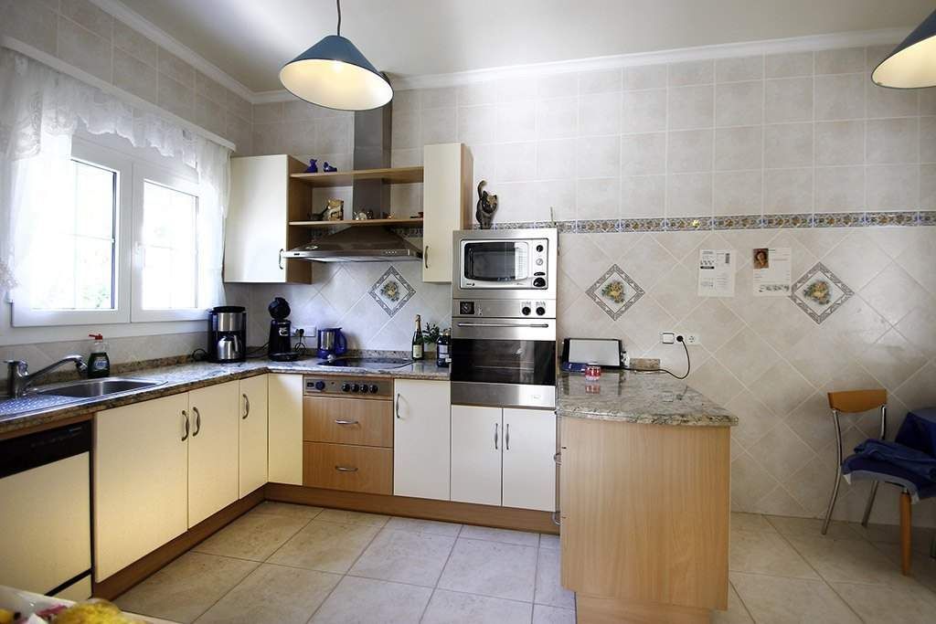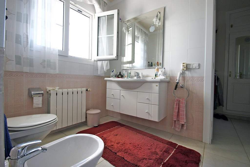 Villa for sale in Calpe, in urbanization Ricarlos, situated in a very good and quiet area (dead end road), just 1 Km from Playa Levante La Fosa (Calpe) and from all the services. It is located on a plot of 1. 200 m2 and has a total area of 450 m2 distributed in 2 floors as follows: on the main floor have 2 bedrooms (master bedroom of 15 m2 with dressing room), 2 bathrooms (1 en-suite), 1 guest toilet, large kitchen of 20 m2 and living room area of 50 m2 connected with a large outdoor terrace where we have a pool. Through an internal staircase we access the ground floor where there are 2 bedrooms, 1 bathroom, kitchen dining living room of 25 m2 (with direct access to the outside), pantry of 10 m2, storage room of 15 m2, workshop of 12 m2, installations room, auxiliary kitchen of 15 m2 and a large garage of 50 m2. This villa was built in year 2. 000, it is in perfect condition. It is equipped with central heating, air conditioning (hot and cold), awnings, PVC exterior carpentry, electric blinds, mosquito nets, Jacuzzi, so on. The garden is fabulous and surrounds the entire plot, with large grass areas and plenty of fruit trees. It has a large outdoor parking area for several vehicles and also a separate second garage of 40 m2. I would like to highlight that this villa enjoys an exclusive perimeter insulation.