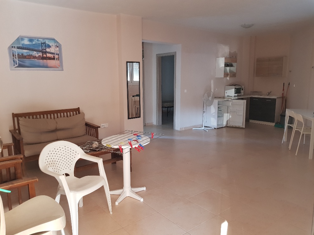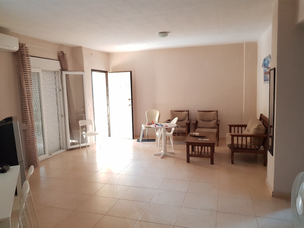Apartment for sale area of 76 sqm on the Kassandra Peninsula, Halkidiki, Greece The apartment is located on the second floor and consists of 2 bedrooms, living room with kitchen, one shower room. The apartment has a corner location. The object has air conditioning. The property is sold with furniture.
