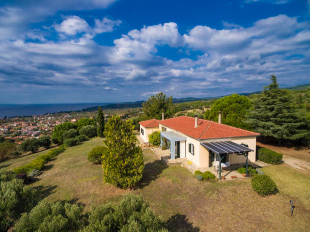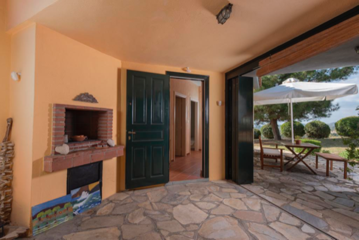 For sale 2-storey Villa with an area of 176 sqm in Sithonia, Halkidiki, Greece The basement consists of one storeroom. The first floor consists of 3 bedrooms, living room, one kitchen, one bathroom, one shower room, one pantry. The Windows offer views of the sea, the mountains and the city. The object has a fireplace, air conditioning, barbecue, heating. The property is sold with furniture. To the property belongs a Parking space. The on-site swimming pool personal use.