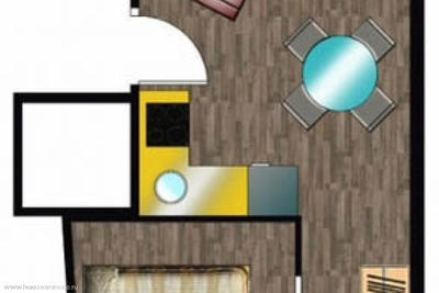Entrance hall, living room with access to a terrace of 30 sq. m, equipped with an open-plan kitchen, bedroom area, bathroom, toilet.
