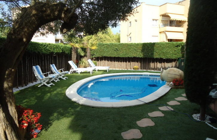 Beautiful townhouse in the city of Platja d\'aro on the Costa Brava. Distance to the centre of Barcelona 100 km, distance from the sea 650 meters. Total area 230 sq. m. the house has 4 bedrooms, 3 bathrooms, living room with exit to the terrace, fully equipped separate kitchen, garage for 2 cars. The house beautiful grounds with swimming pool and relaxation area. Air conditioning, gas heating, storage room. The house is in excellent condition. Quiet area of the city.