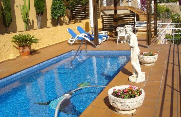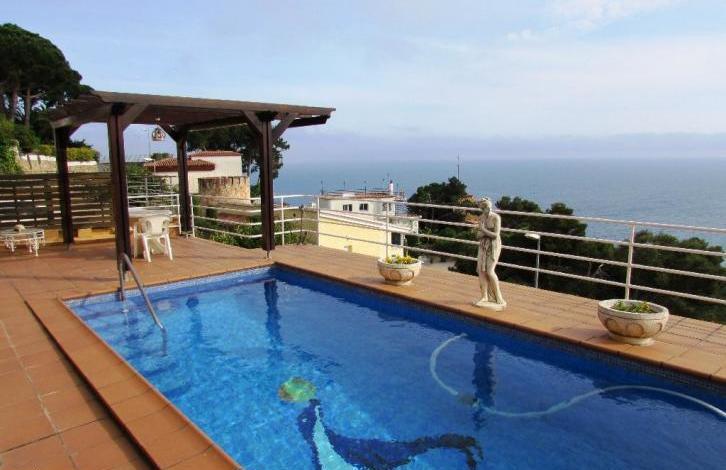 Cozy house in the area of Sant Joan in Blanes. The distance to the center of Barcelona is 60 km, the distance to the sea is about 1. 5 km. The total area is 150 square meters. on the territory of 470 square meters. The house has 4 bedrooms, 2 bathrooms, lounge with access to the terrace, kitchen, several terraces and balconies, parking for several cars. Air conditioning hot / cold, fireplace. The house has a beautiful garden with a swimming pool and a barbecue area. From the territory there are beautiful sea views!