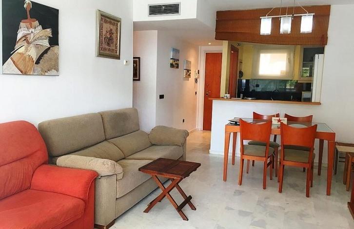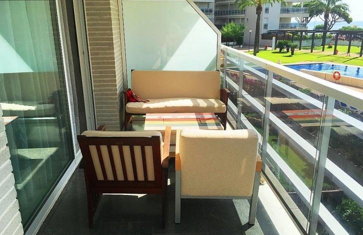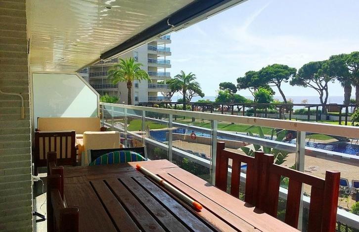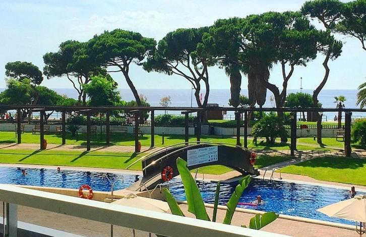 Wonderful apartment in the complex, Sabanell Park in Blanes. The distance to Barcelona is 60 km away. the Complex is located first line to the sea! Year of construction 2002. Huge community area with two swimming pools, garden, Playground and Jacuzzi. Security 24 hours, Concierge. Lift, air conditioning warm/cold. Total area 85 sq. m. the apartment has 3 bedrooms, 2 bathrooms, a spacious living room with exit to the terrace, separate fully equipped kitchen. The balcony offers views of the sea and the pool. The price of the apartment includes a Parking space for one car. 2 floor apartment in excellent condition. A 2-minute walk from the bus stop to the city centre 10 minutes walk.