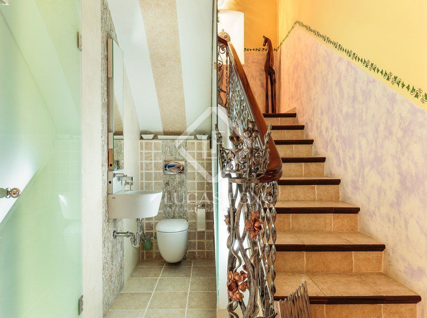 The house was built in 1910 and fully renovated in 2007. The house has a discreet, traditional appearance on the outside but the front door opens up to reveal luxurious interiors with beautiful artistic paintings throughout the house. The ceramic tiles on the floors and walls, although new in some spaces, imitate the traditional style of country houses in this region. The property has a lift that connects all floors.