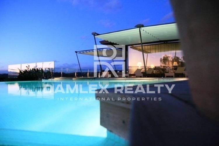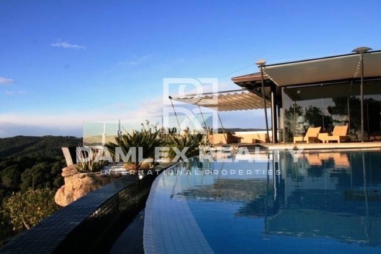 Современная новая вилла в городе Льорет де Мар. Вилла насположена на хлме, в окружении сосновых деревьев. Дом посторен по современным технологиям, имеет панорамное остекление, интересный дизайн. Все комнаты и помещения виллы просторные и наполненые светом. Вилла находитя вдалеке от щумных отелей и толп туристов, вместе с тем, до пляжа всего 5 минут на машине. До Барселоны можно легко и быстро добраться за 40 минут по автотрассе.