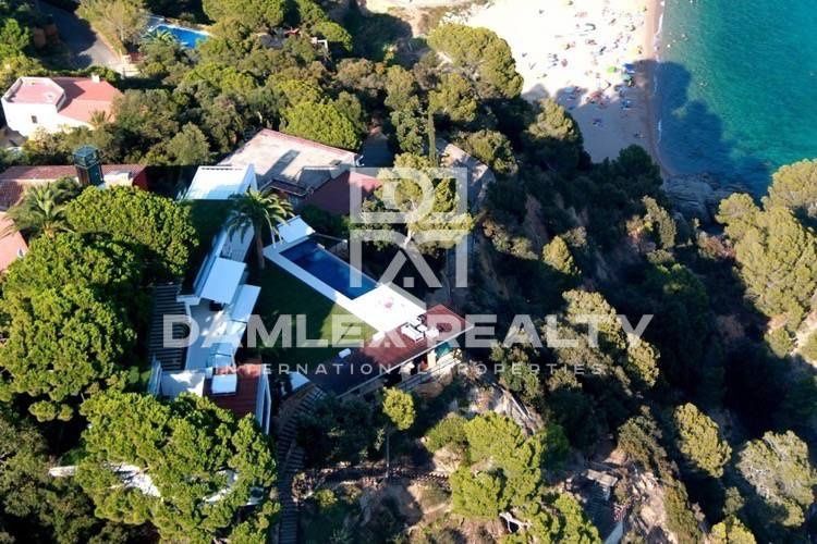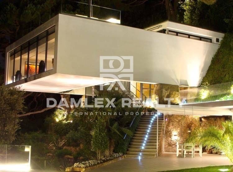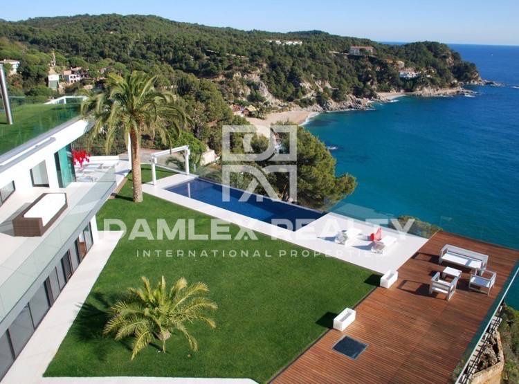 Эта великолепная дизайнерская вилла находится в закрытом охраняемом поселке, расположенном в 5 км от уютного старинного городка Тосса де Мар. Вилла расположена на скалистом выступе благодаря чему имеет потрясающий вид на море. Основной дом имеет большую гостиную, полностью укомплектованную кухню, две спальни, большой мастер-суит с собственной ванной комнатой и гардеробной. По соседству с основным домом распологаются гостевые апартаменты с большой террасой, гостевыми спальнями, отличной зоной для отдыха. Вилла современного дизайна, выдержана в стиле минимализм, имеет панорамное остекление, несколько зон отдыха, винный погреб, панорамный лифт который соединяет гараж с жилыми помещениями дома. Данный объект отвечает самым изысканным вкусам, множество деталей придают вилле эксклюзивность, к таким деталям можно отнести наличие двух частных пещер на пляже, одна из которых превращена в зону отдыха, а другая используется как гараж для морского судна. Вилла продумана до мельчайших деталей, особое внимание было уделено окружающим видам, находясь в доме или на участке возде бассейна создается впечатление бескрайнего горизонта уходящего вдаль. Возможность покупки дома по соседству, который используется как гостевой, площадь дома 390 м2, 5 спален, 5 сан узлов, участок 1200 м2.